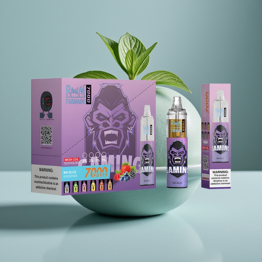 RandM Fumot Tornado 7000 Puffs 14 ML RGB Licht Typ-C Mesh Coil Dr. Blau