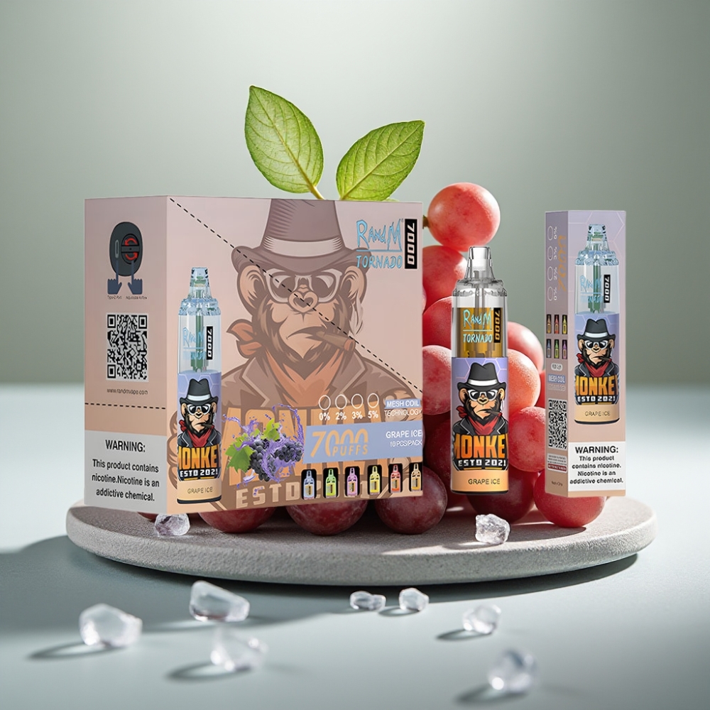 RandM Fumot Tornado 7000 Puffs RGB Licht Typ-C Luftregelung Graubeere Eis