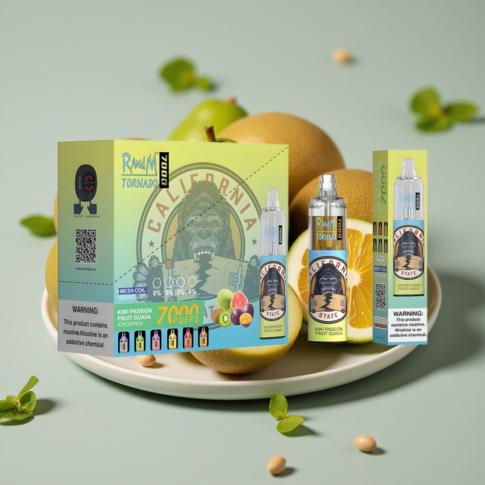 RandM Fumot Tornado 7000 RGB Licht Mesh Coil Typ-C Kiwi Passionsfrucht Guava