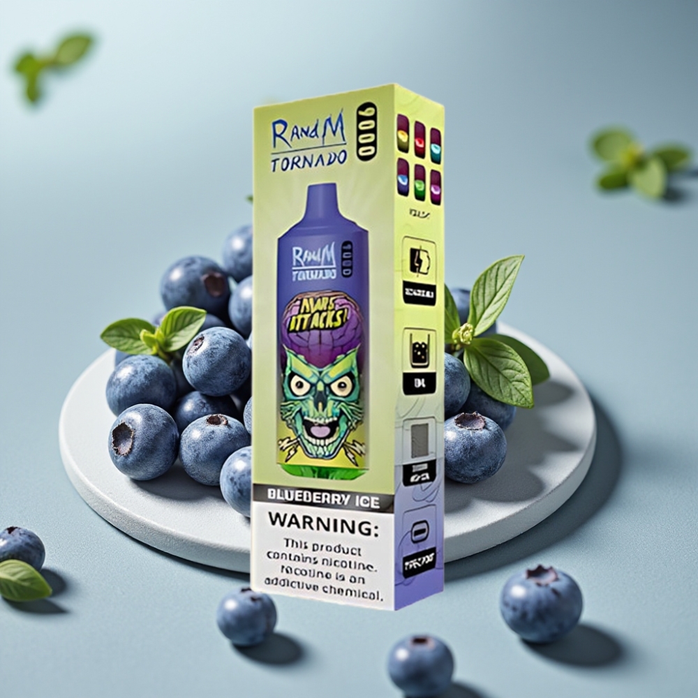 RandM Tornado 9000 Puffs 18 mL Mesh Coil RGB Display Blaubeer Eis