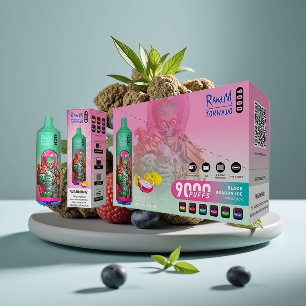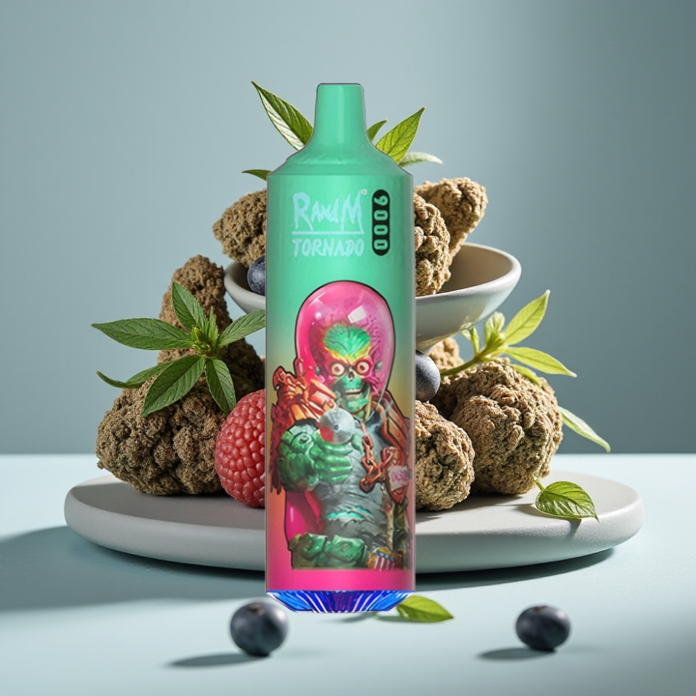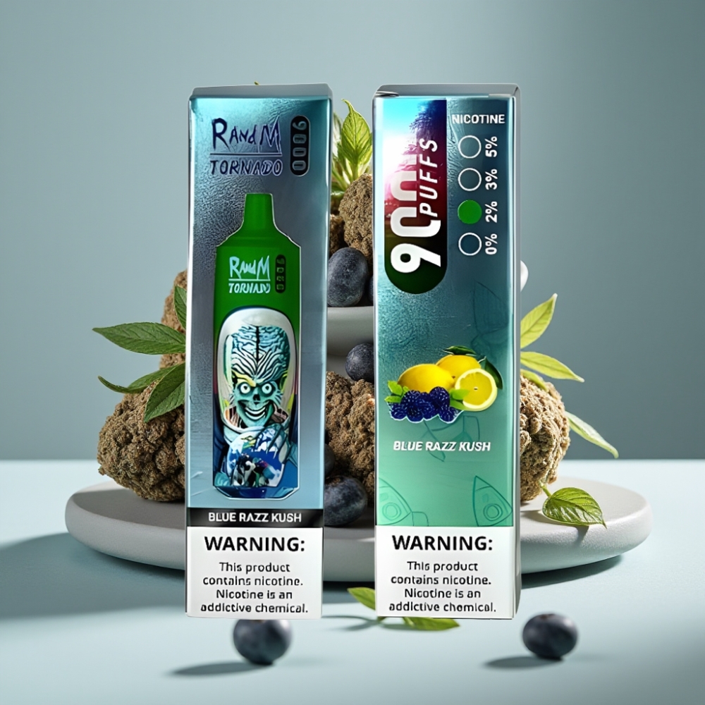 RandM Tornado 9000 Puffs 18 mL Mesh Coil RGB Display Blaue Razz Kush