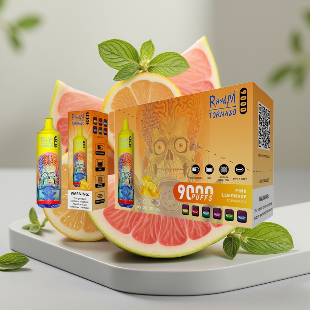 RandM Tornado 9000 Puffs 18 mL Mesh Coil RGB Display Pink Zitronenlimonade