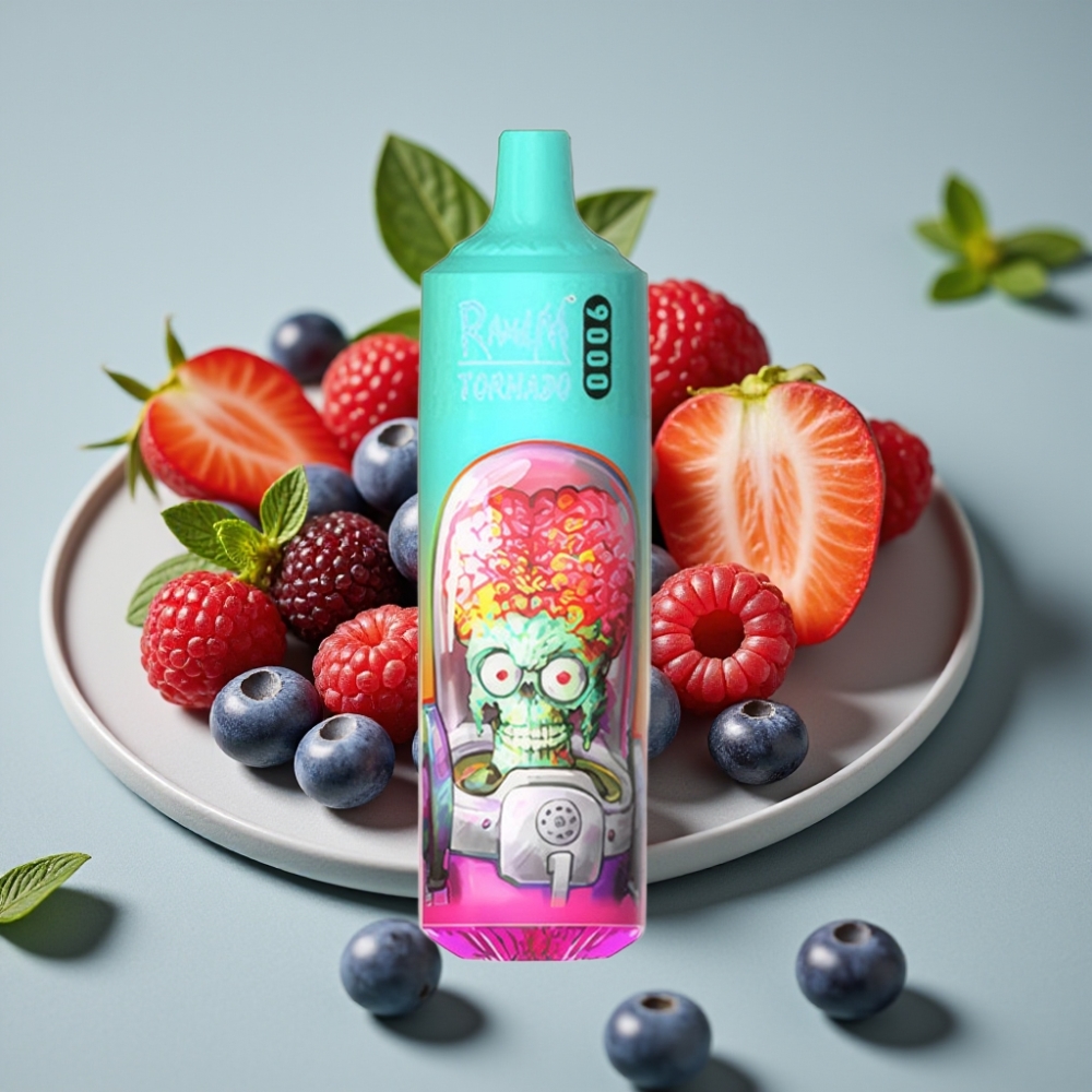 RandM Tornado 9000 Puffs 850mAh 18mL Mesh Coil RGB Display Blau-Saure Himbeere