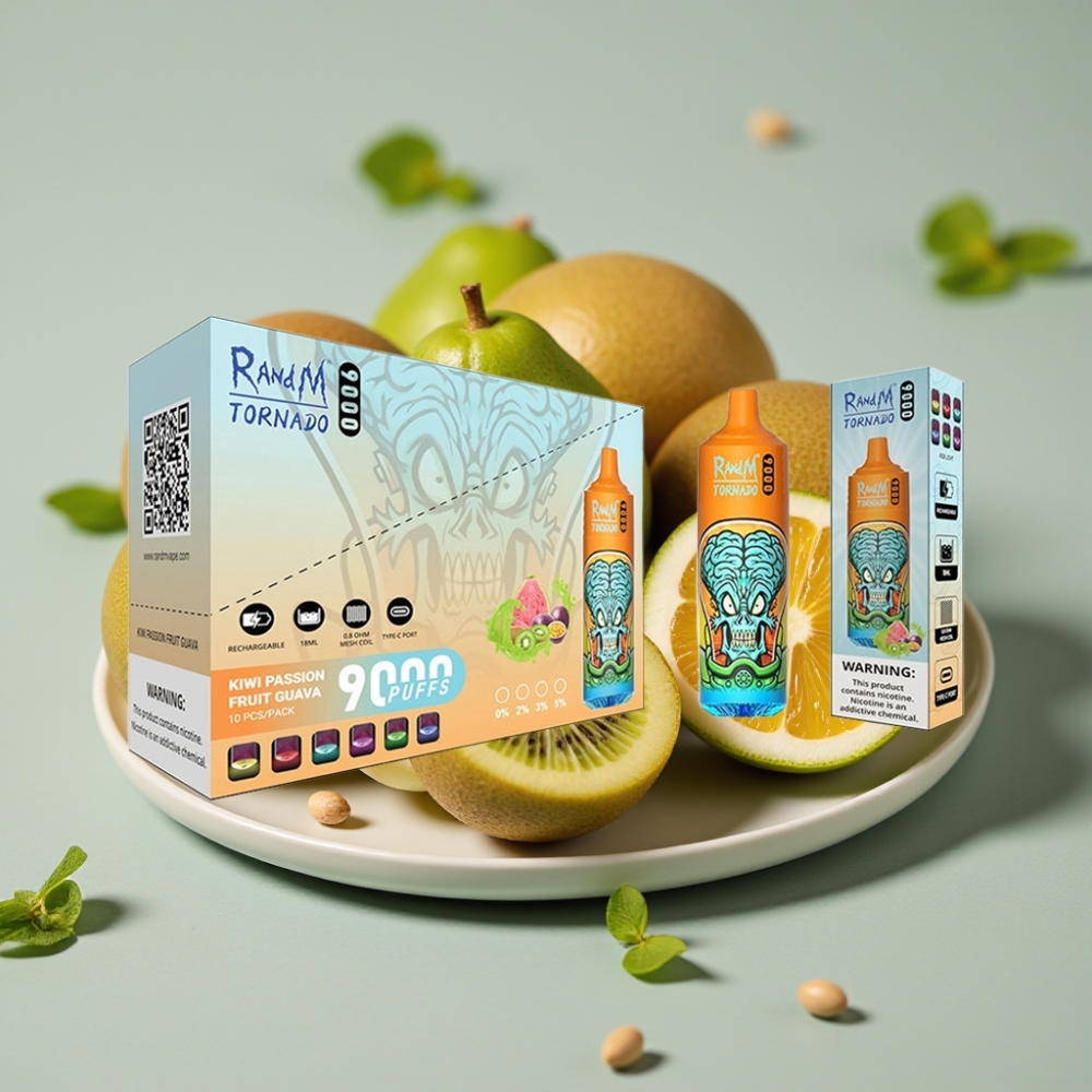 RandM Tornado 9000 Puffs 850mAh 18mL Mesh RGB Kiwi-Passionsfrucht-Guava